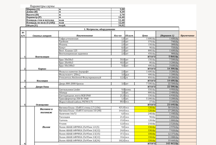 Если Вас устравает, делаем проект будущей сауны и итоговую смету